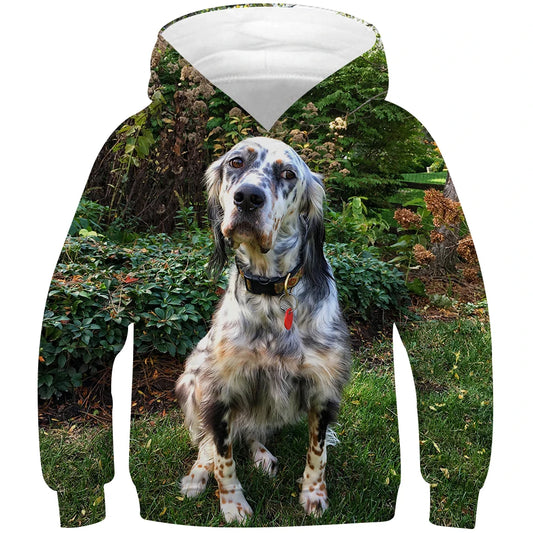 Spring Autumn 4-13Y Kids Animal English Setter Dog Pullover Clothes Boys Girls Hooded Sweatshirts Children Casual Hoodie Costume