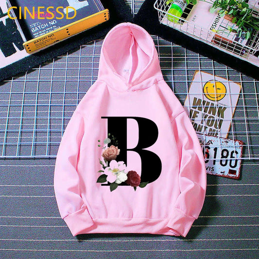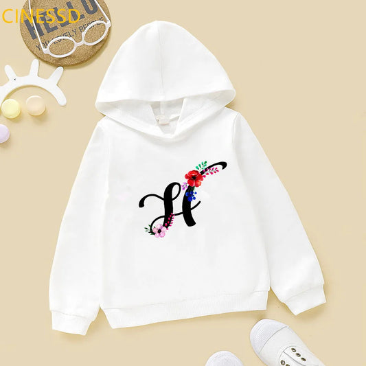 Novelty Floral English Alphabet Letter Print Kids Sweatshirts Cute Kids Top Clothes Teen Girls Winter White Pink Yellow Hoodies