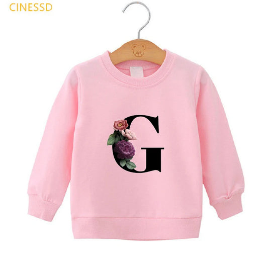 Flowers 26 English Alphabet G-P Print Children 'S Sweatshirts And Hoodie Cute Girls Clothes Winter Velvet Streetwear Teen Tops